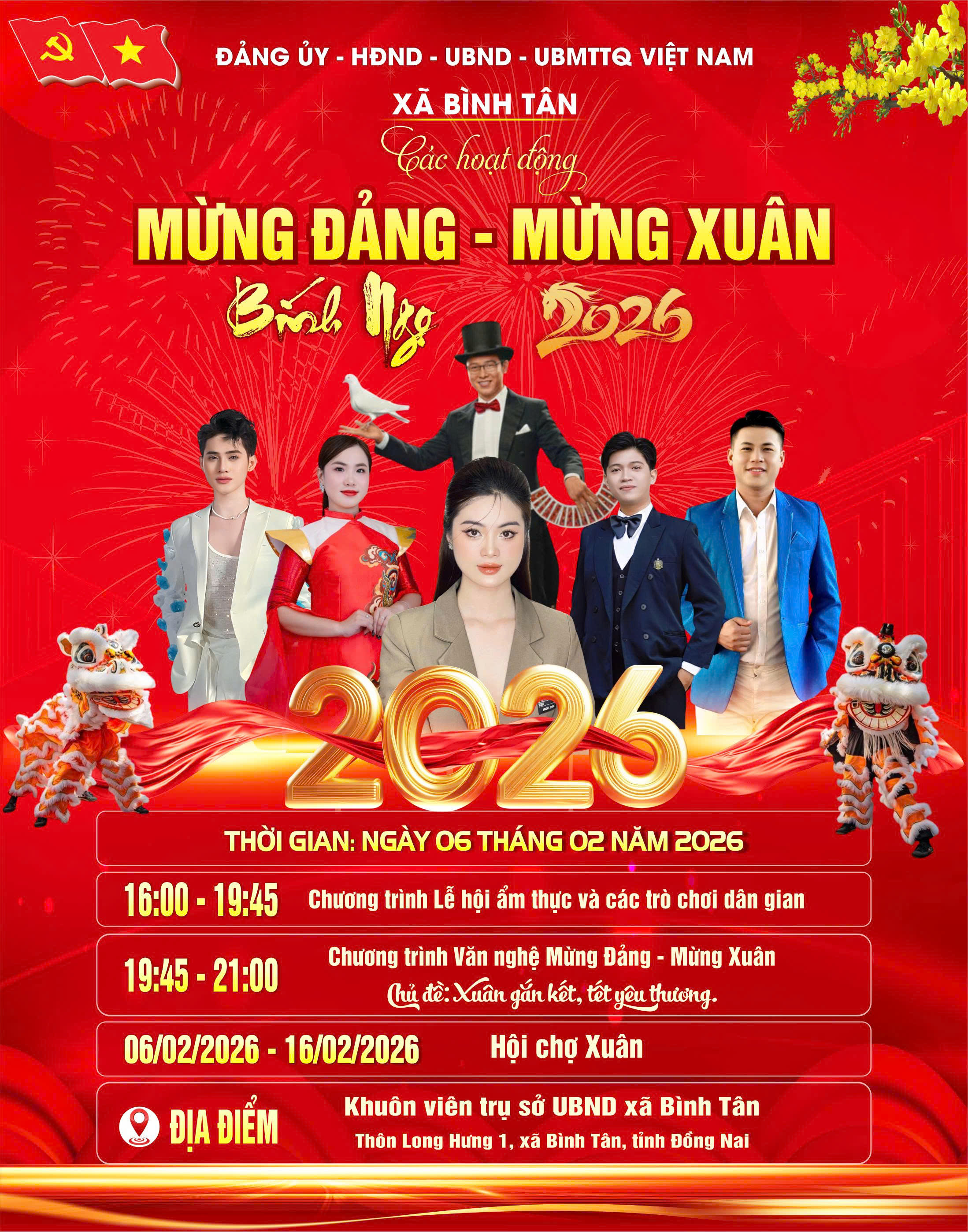 THÔNG BÁO ĐẾN TOÀN THỂ NGƯỜI DÂN XÃ BÌNH TÂN CÁC HOẠT ĐỘNG MỪNG ĐẢNG MỪNG XUÂN BÍNH NGỌ NĂM 2026
