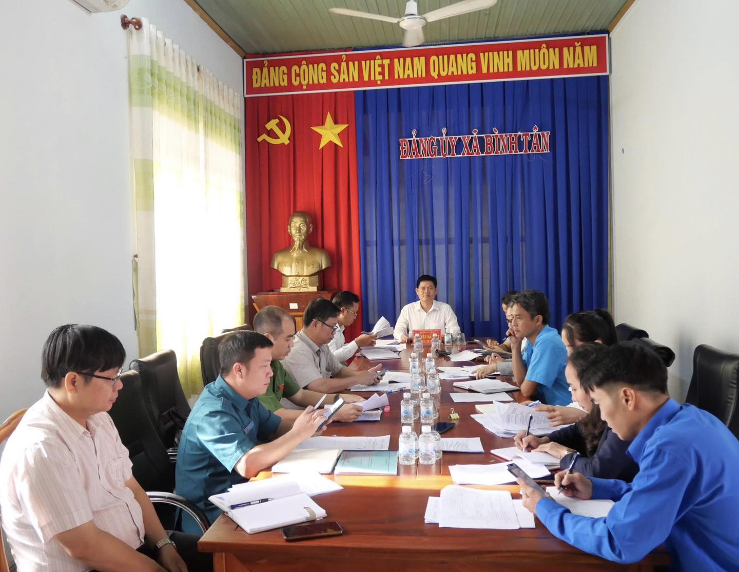 Tại hội nghị, Ban Chỉ đạo đã thông qua Quyết định thành lập Ban Chỉ đạo các ngày lễ lớn và sự kiện xã Bình Tân giai đoạn 2025–2030; Quy chế hoạt động của Ban Chỉ đạo; và báo cáo đăng ký tổ chức các sự kiện chính trị, văn hóa – xã hội năm 2026. Các nội dung được triển khai nhằm làm rõ trách nhiệm của từng bộ phận, yêu cầu về công tác chuẩn bị và tiến độ thực hiện.
