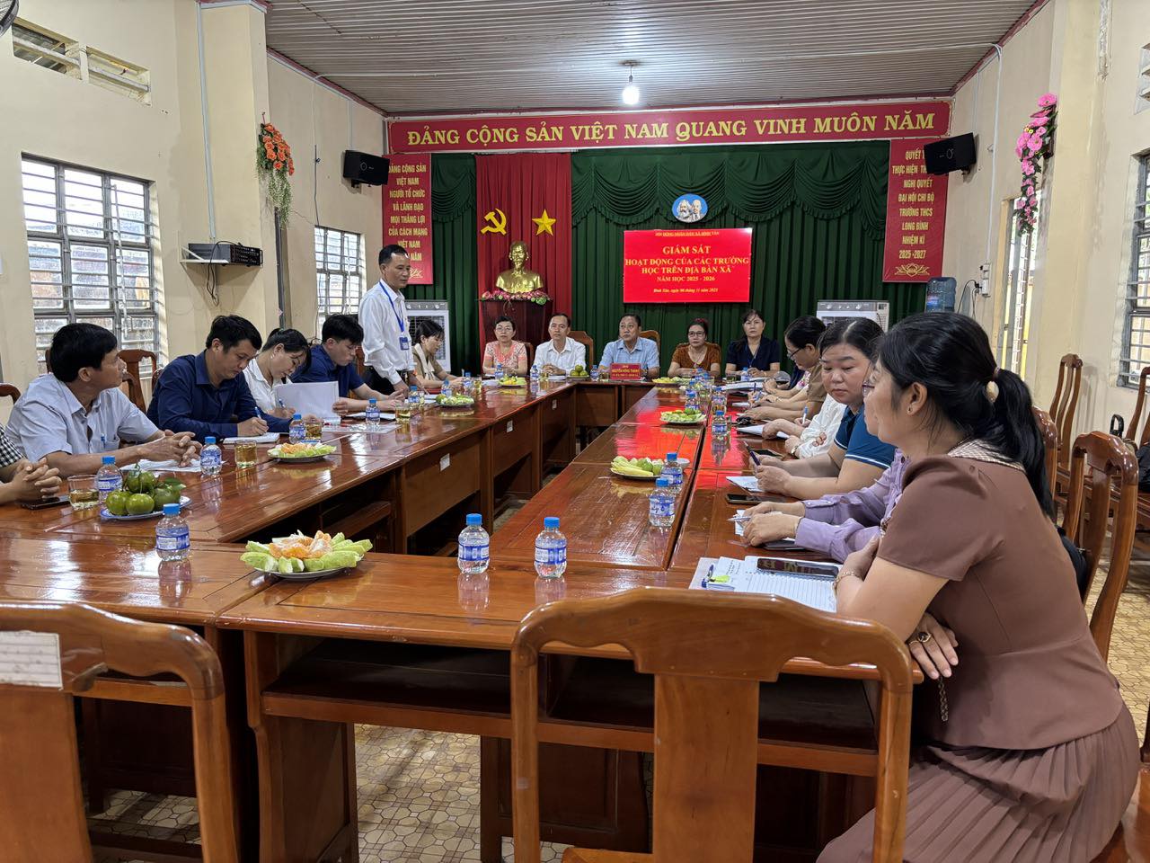 Đoàn công tác do đồng chí Nguyễn Hồng Thanh – Phó Chủ tịch HĐND xã Bình Tân làm Trưởng đoàn, cùng các thành viên Ban Kinh tế – Xã hội của HĐND xã. Đây là hoạt động có ý nghĩa thiết thực, góp phần nâng cao hiệu quả quản lý nhà nước trong lĩnh vực giáo dục, đồng thời bảo đảm việc thực hiện tốt các chủ trương, chính sách của Đảng và Nhà nước tại cơ sở.
