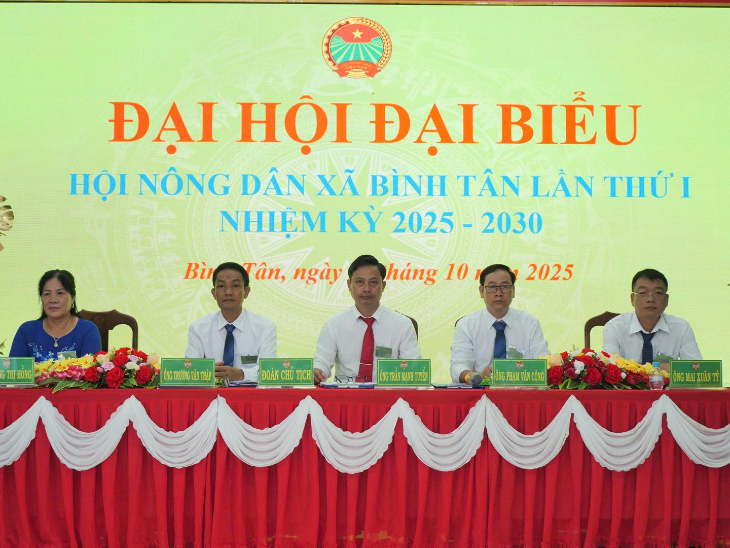 Đại hội đại biểu Hội Nông dân xã Bình Tân lần thứ I, nhiệm kỳ 2025–2030 đã thành công tốt đẹp – mở ra một chặng đường mới đầy niềm tin, khát vọng và quyết tâm của giai cấp nông dân xã Bình Tân trong thời kỳ đổi mới và hội nhập.