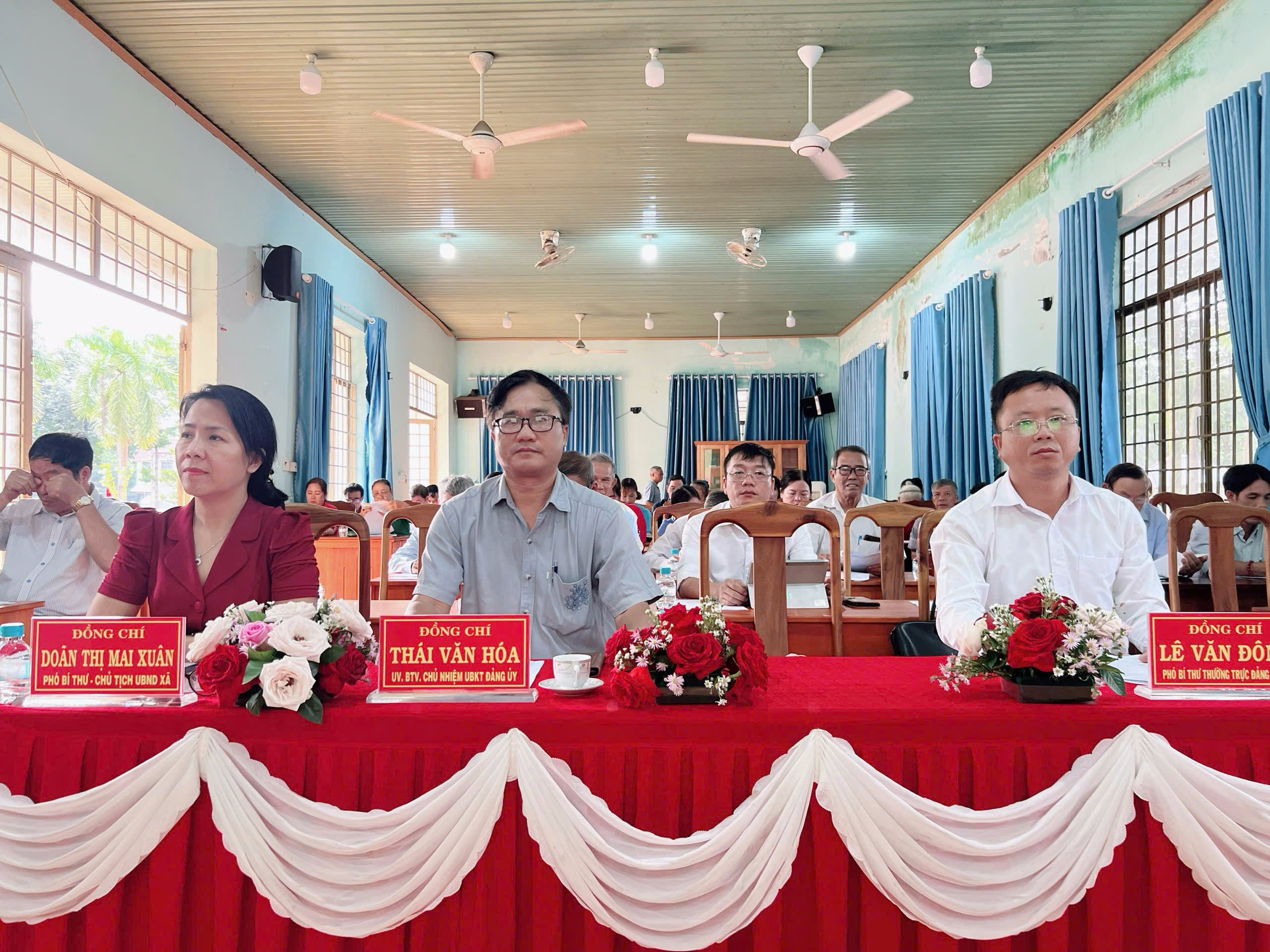 Đồng chí Lê Văn Đông – Phó Bí thư Thường trực Đảng ủy xã; Đồng chí Doãn Thị Mai Xuân – Phó Bí thư, Chủ tịch UBND xã; Đồng chí Trần Mạnh Tuyển – Ủy viên Ban Thường vụ, Chủ tịch Ủy ban MTTQ xã, cùng với sự tham dự đại biểu là ủy viên Ủy ban MTTQ xã nhiệm kỳ mới, đại diện lãnh đạo HĐND, UBND, các ban ngành, đoàn thể, Trưởng Ban công tác Mặt trận các thôn.