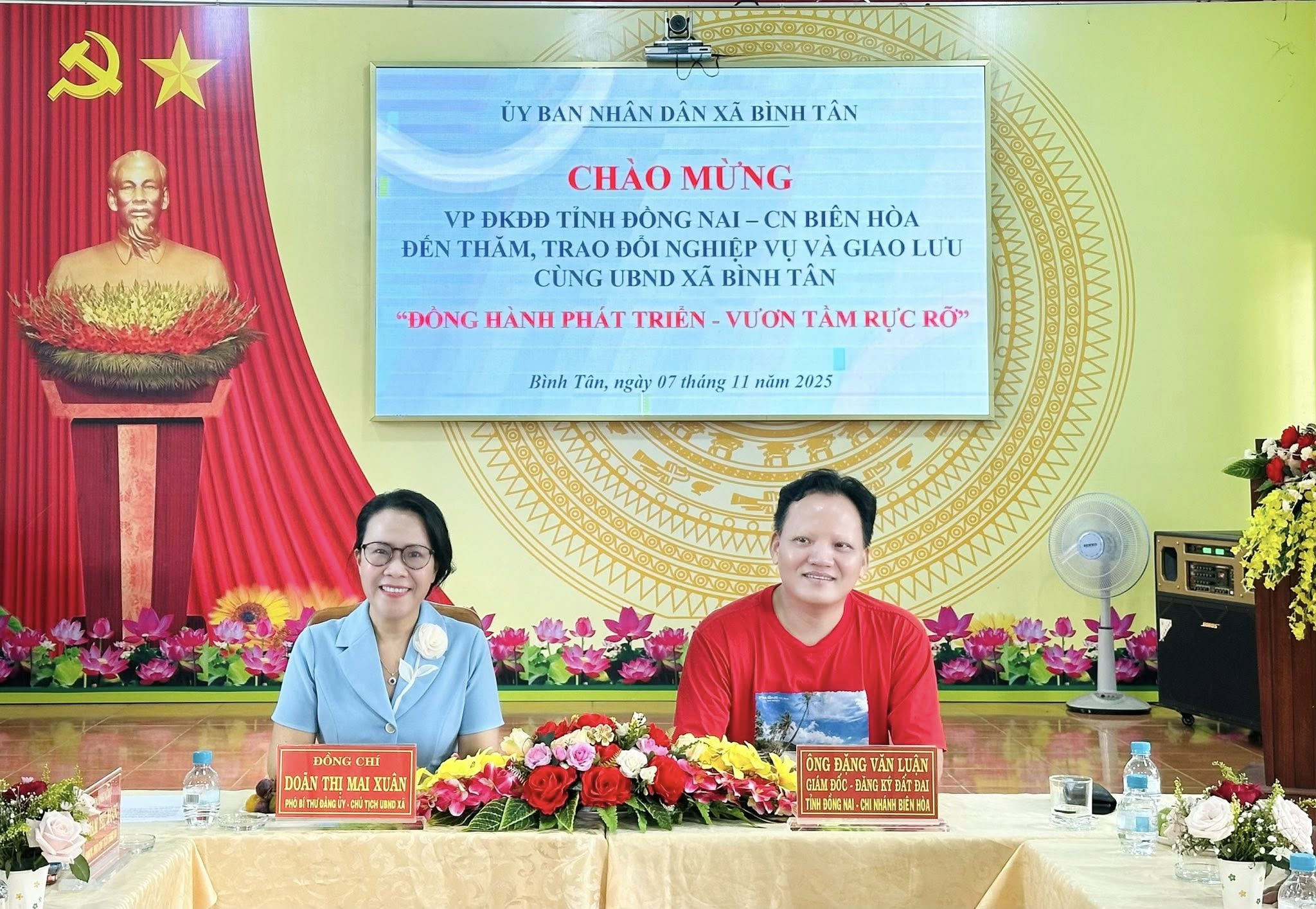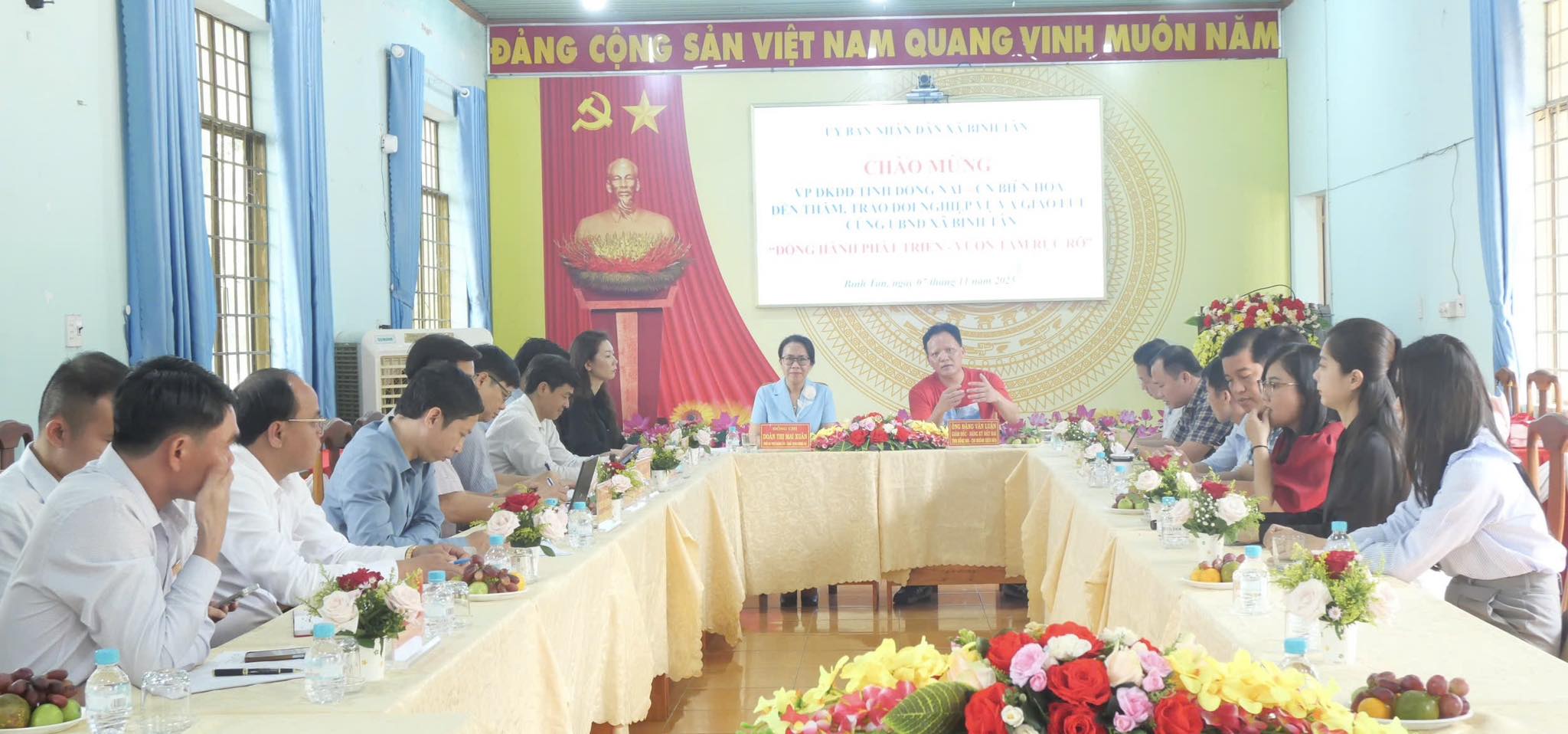 Phát biểu đáp lời, ông Đặng Văn Luận bày tỏ sự cảm kích trước sự đón tiếp chu đáo và tinh thần trách nhiệm, cầu thị của lãnh đạo và cán bộ, công chức xã Bình Tân. Ông khẳng định, trong thời gian tới, Văn phòng Đăng ký đất đai chi nhánh Biên Hòa sẽ tiếp tục phối hợp, đồng hành và hỗ trợ xã trong các nội dung nghiệp vụ nhằm giúp địa phương thực hiện tốt nhất công tác quản lý nhà nước về đất đai.