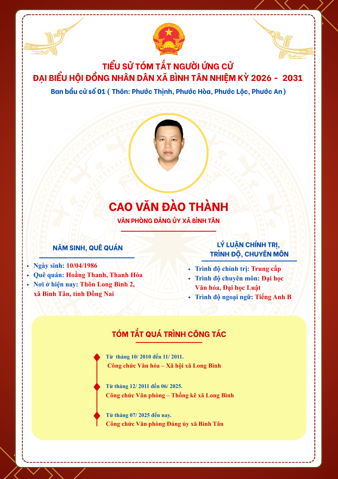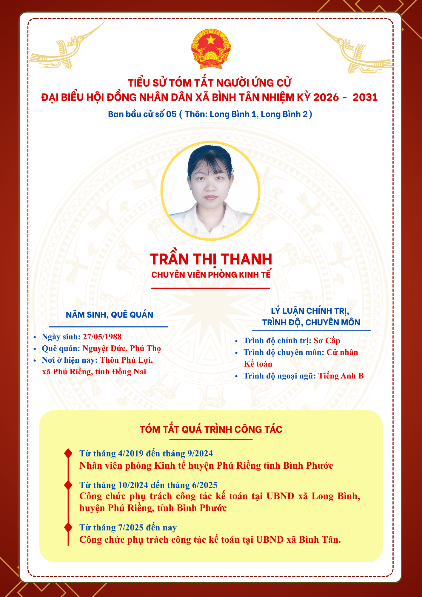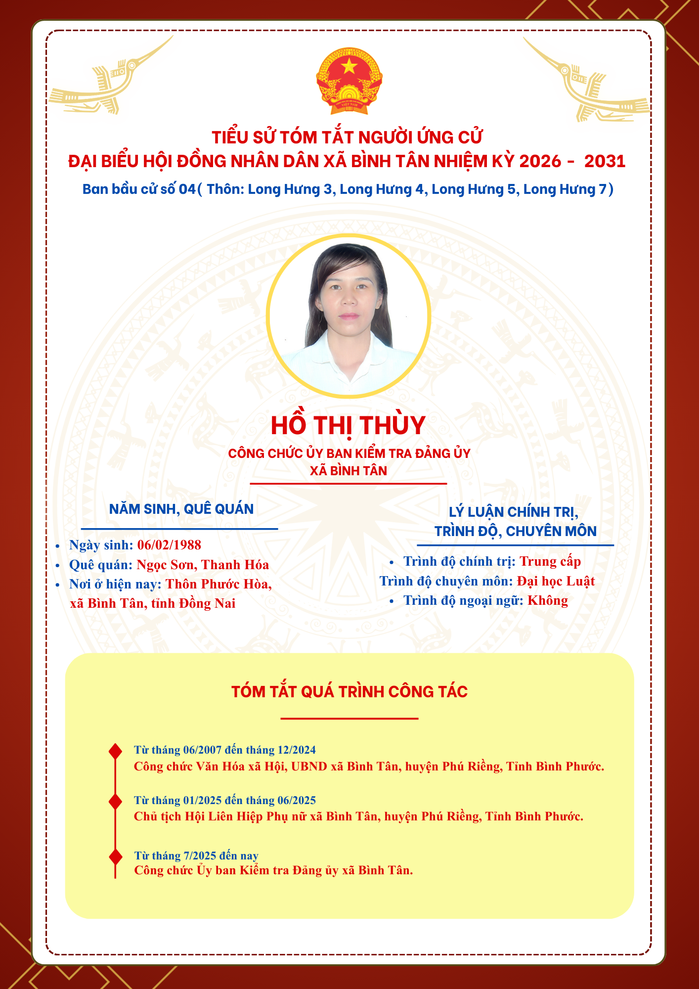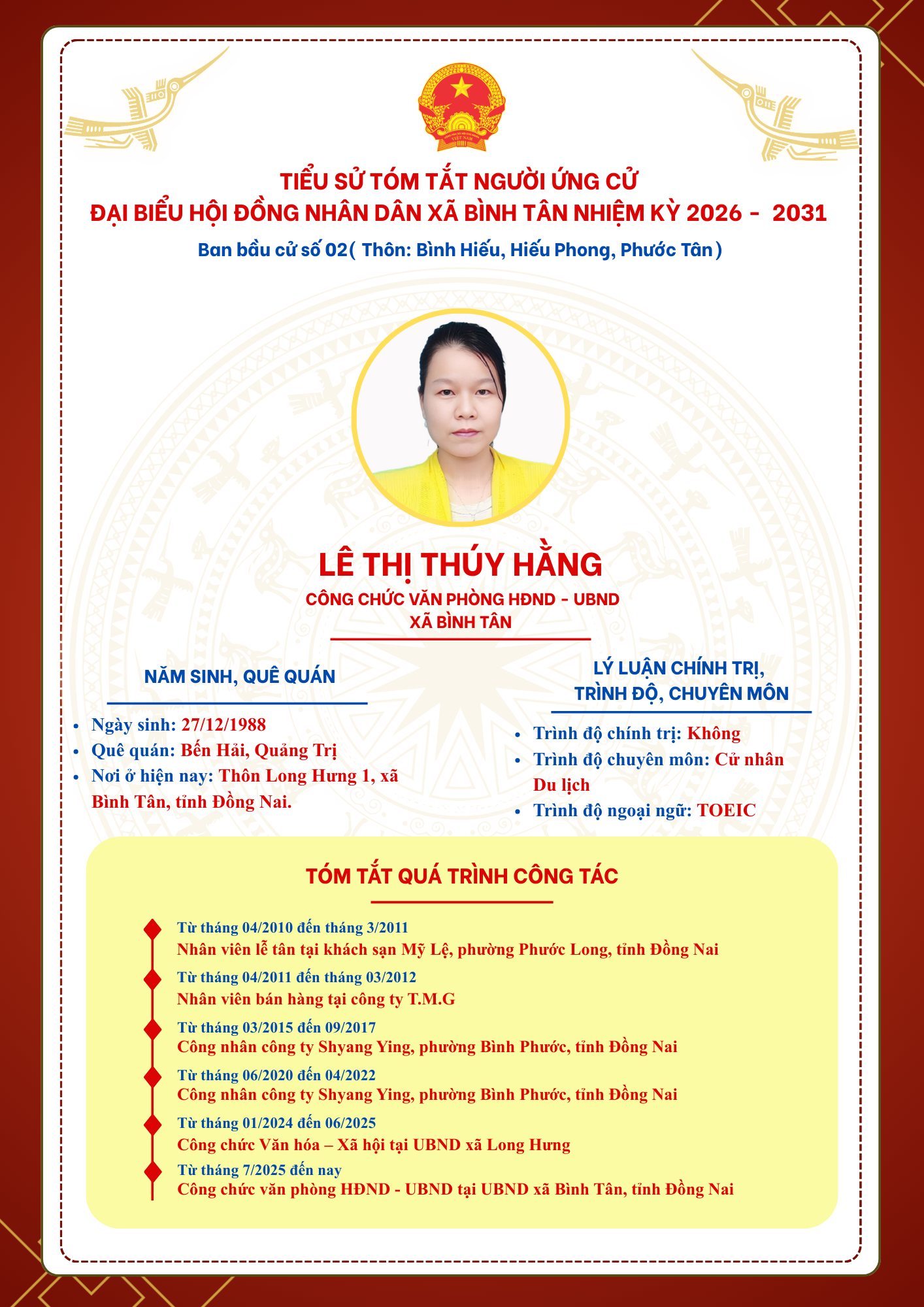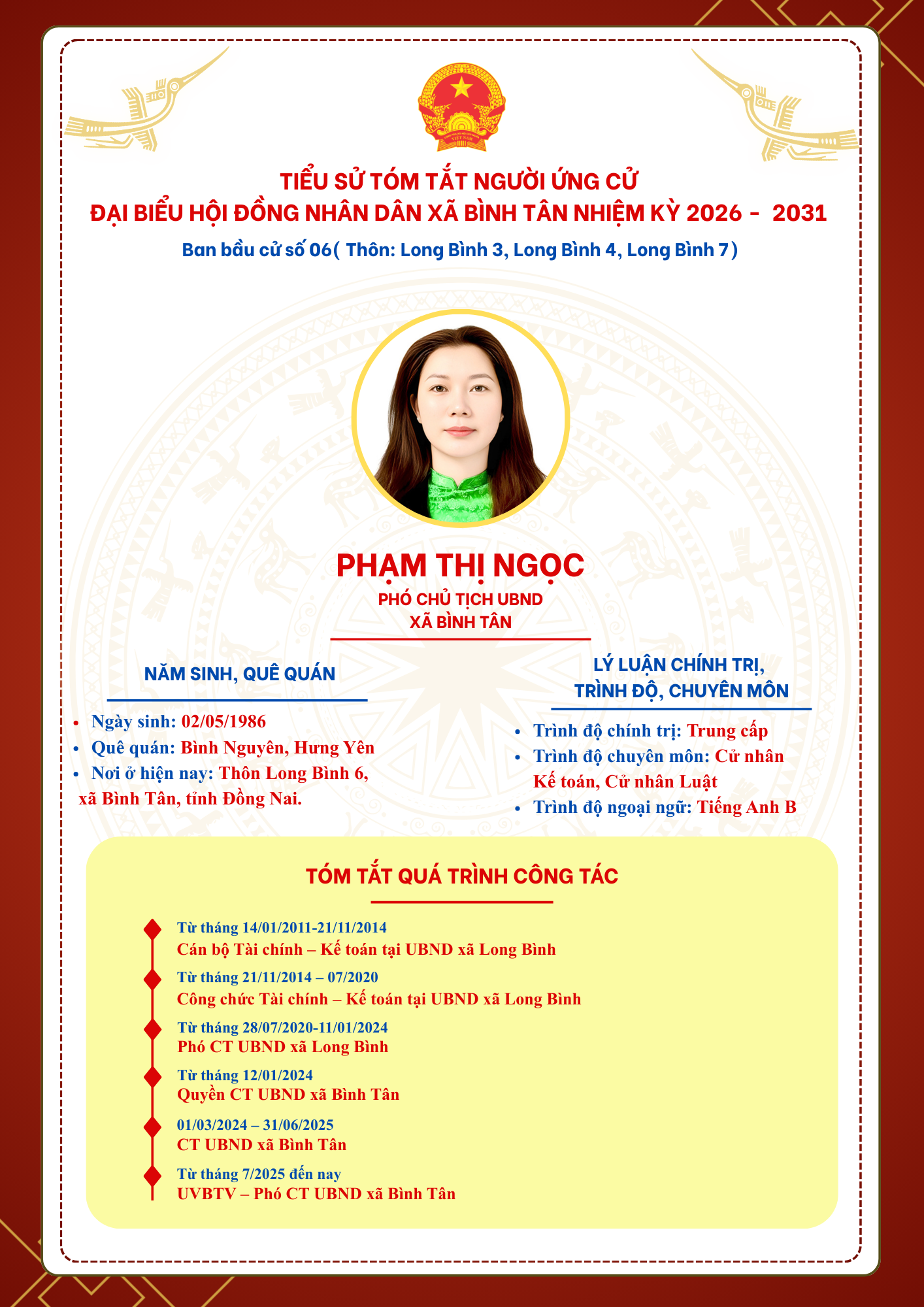 TIỂU SỬ TÓM TẮT NGƯỜI ỨNG CỬ ĐẠI BIỂU HỘI ĐỒNG NHÂN DÂN XÃ BÌNH TÂN NHIỆM KỲ 2026 - 2031