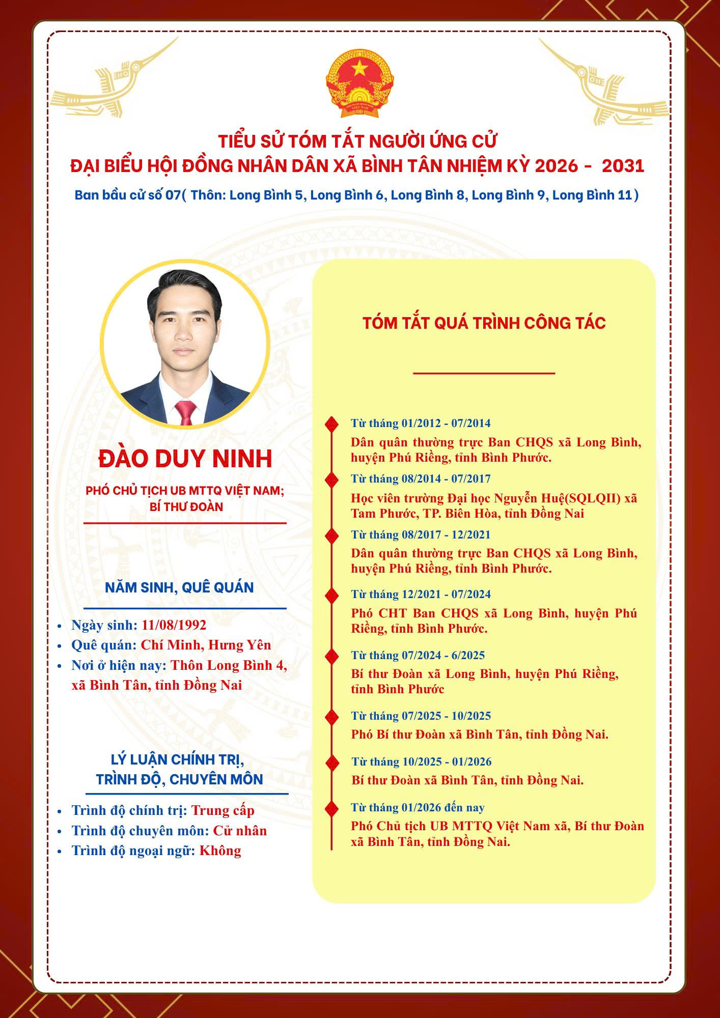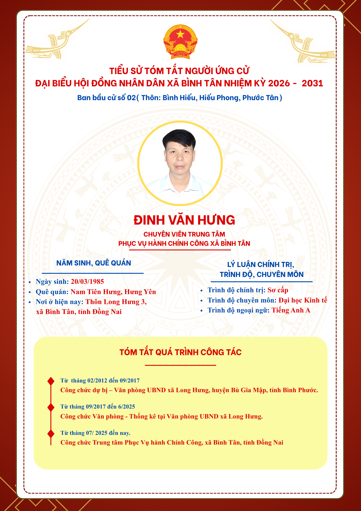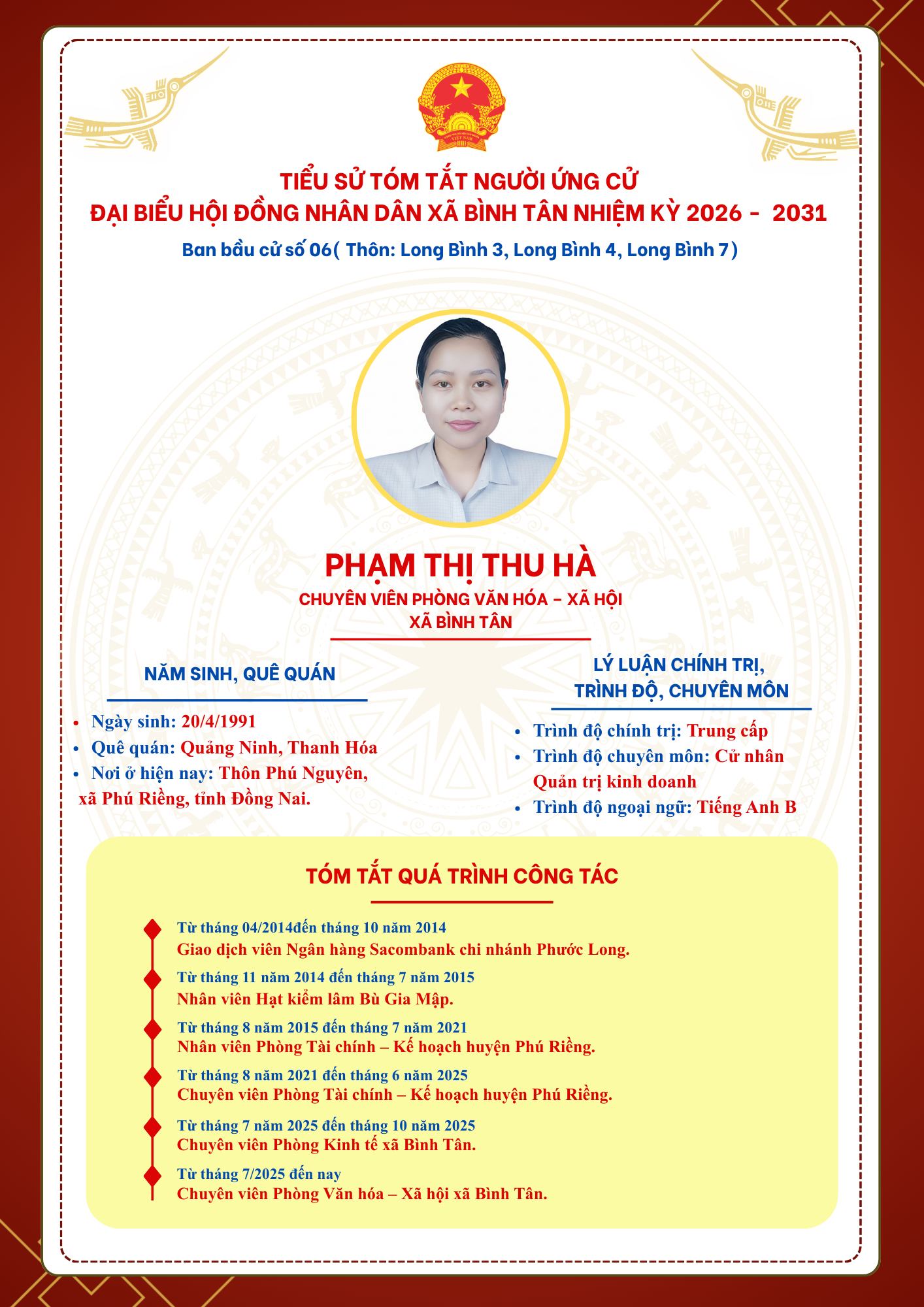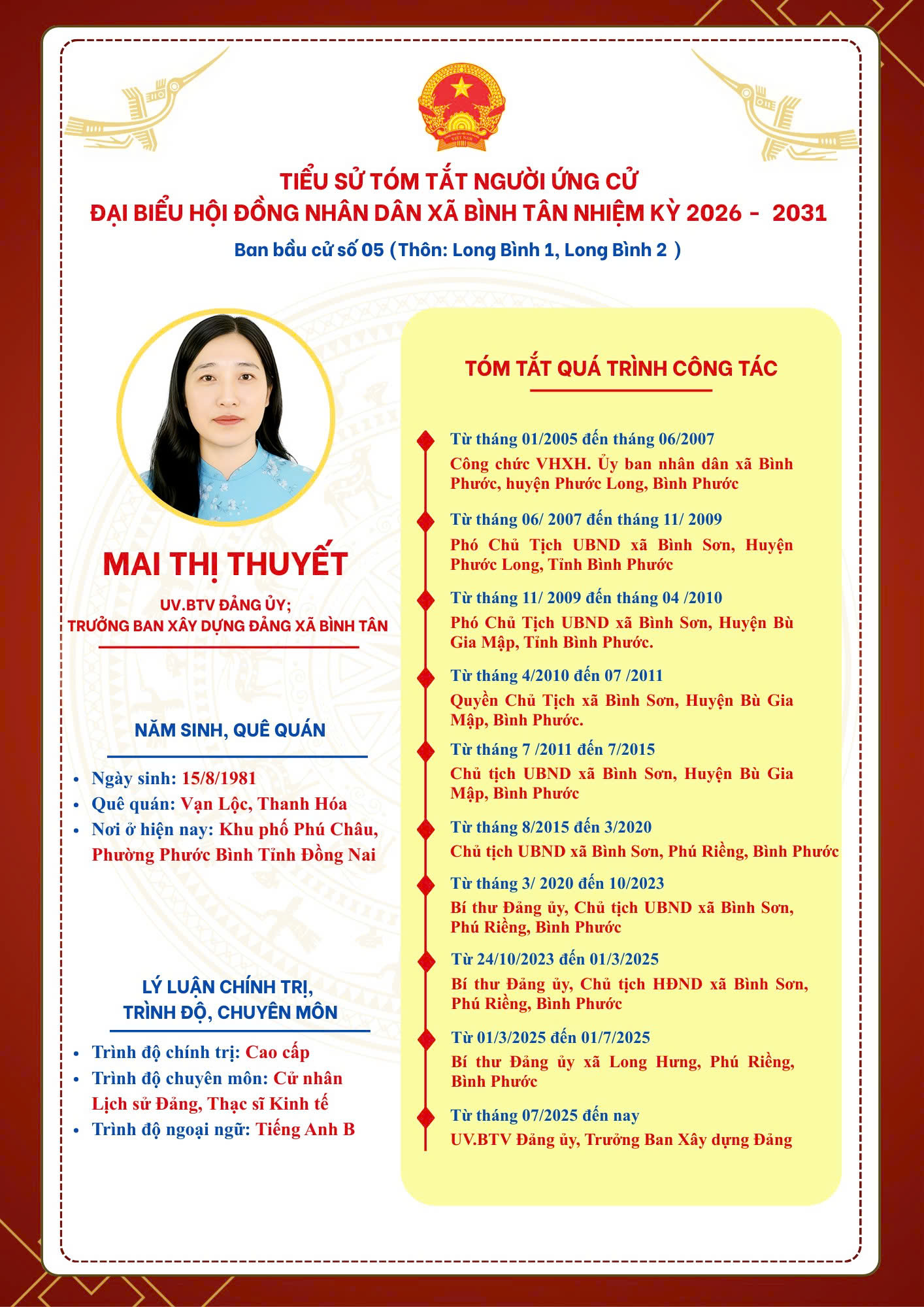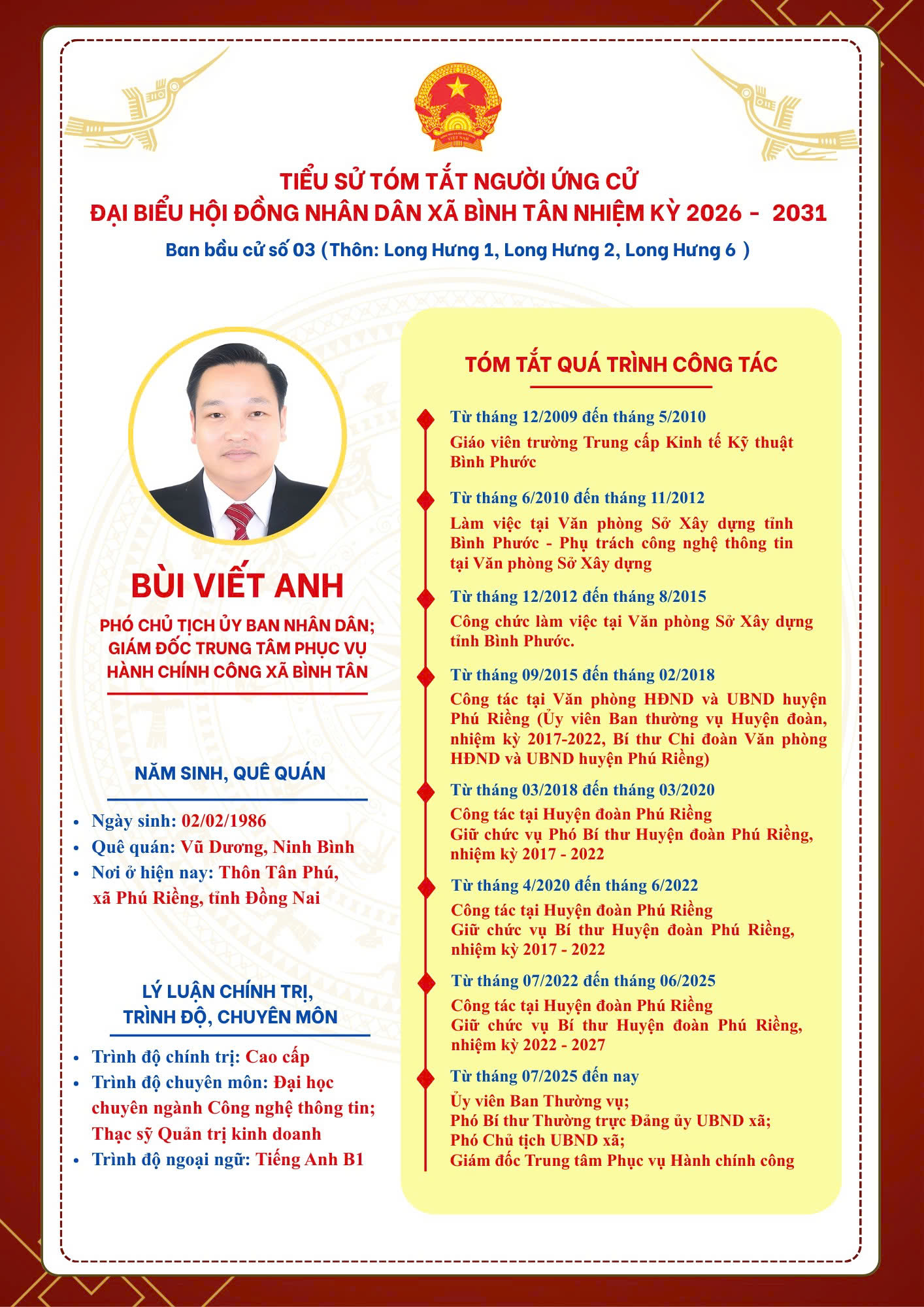 TIỂU SỬ TÓM TẮT NGƯỜI ỨNG CỬ ĐẠI BIỂU HỘI ĐỒNG NHÂN DÂN XÃ BÌNH TÂN NHIỆM KỲ 2026 - 2031