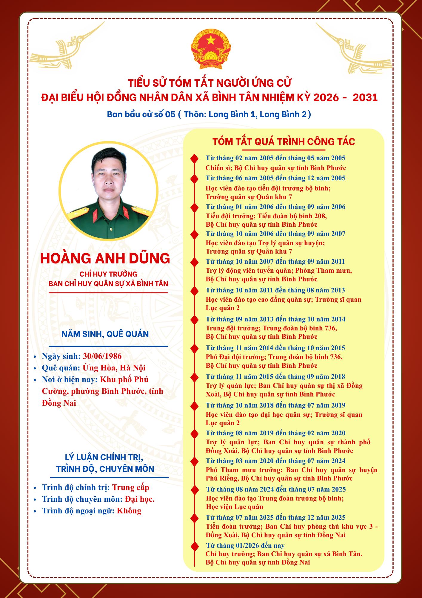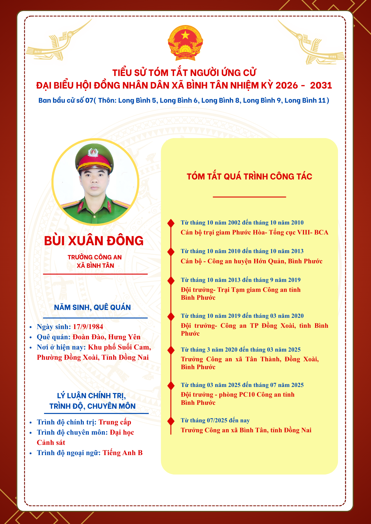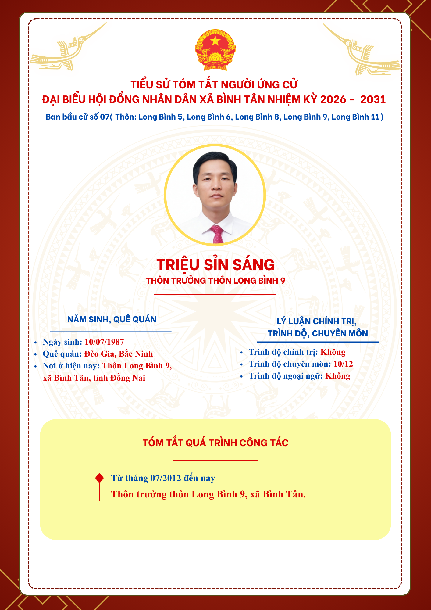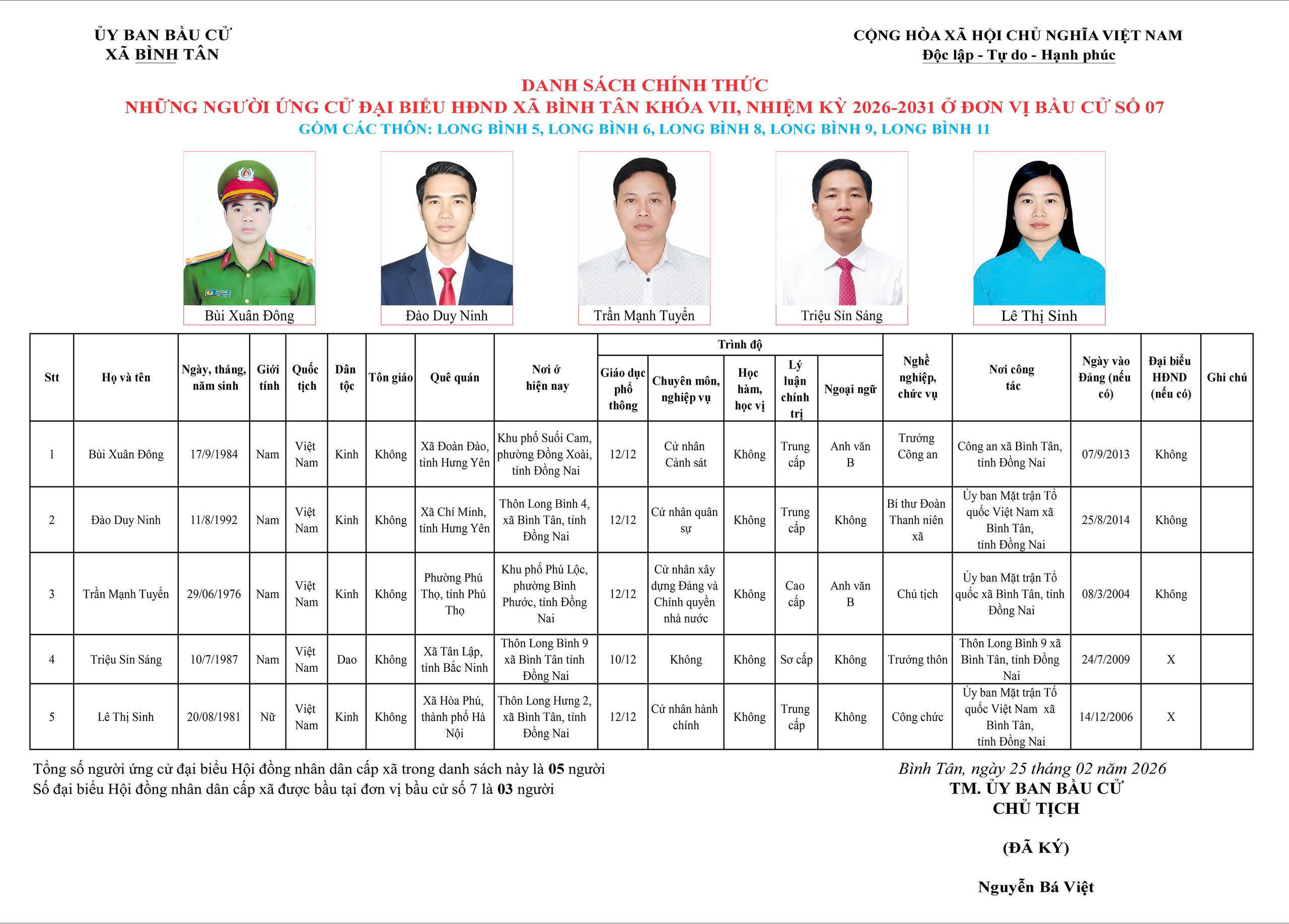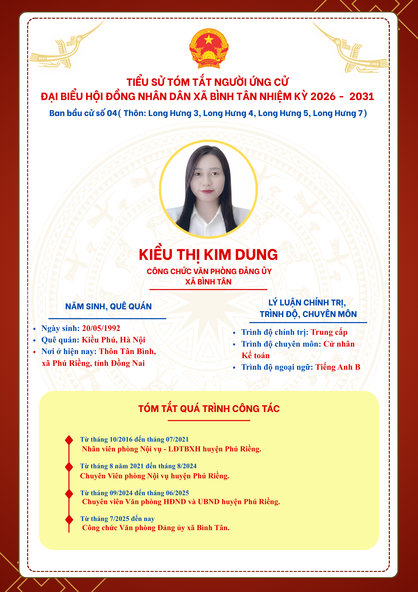 TIỂU SỬ TÓM TẮT NGƯỜI ỨNG CỬ ĐẠI BIỂU HỘI ĐỒNG NHÂN DÂN XÃ BÌNH TÂN NHIỆM KỲ 2026 - 2031