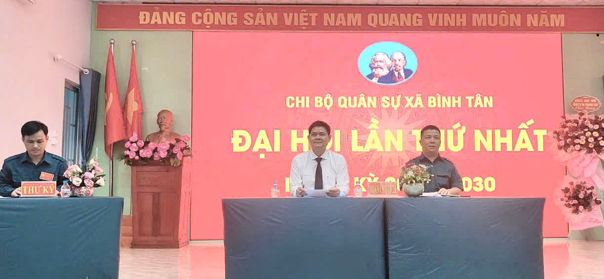 Dự và chỉ đạo đại hội có đồng chí Nguyễn Bá Việt – Bí thư Đảng ủy xã, Chủ tịch HĐND xã, Bí thư Chi bộ Quân sự xã Bình Tân; các đồng chí lãnh đạo Đảng ủy – UBND xã, Ban Chỉ huy Quân sự và toàn thể đảng viên trong Chi bộ.