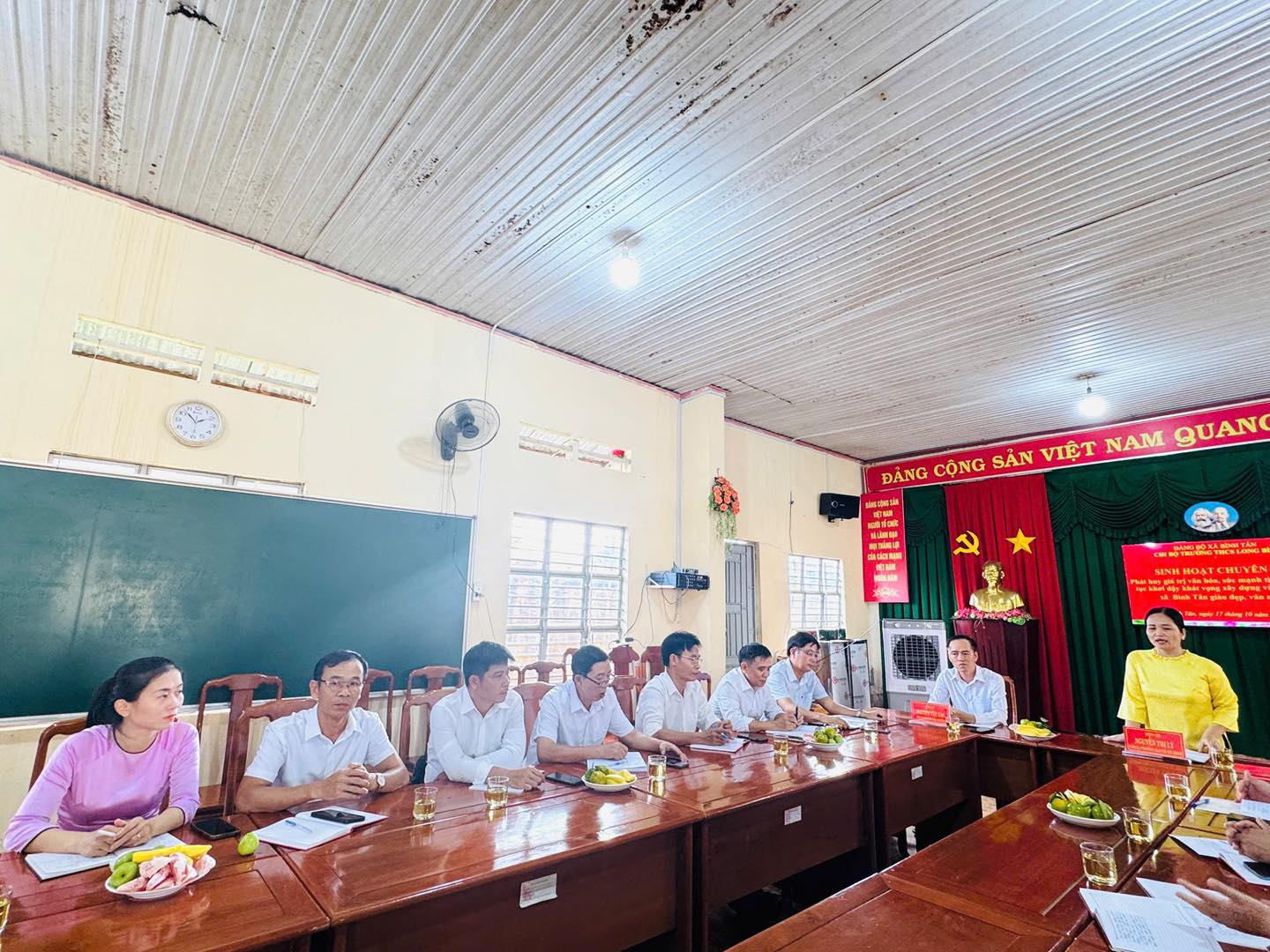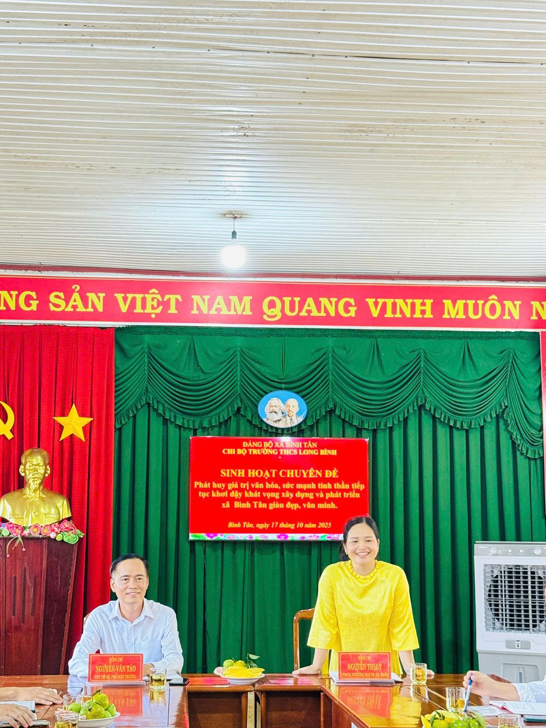Tại buổi sinh hoạt, các đảng viên trong chi bộ đã cùng nhau thảo luận, trao đổi về việc phát huy các giá trị văn hóa truyền thống, tinh thần đoàn kết, trách nhiệm trong công tác giảng dạy và giáo dục học sinh; đồng thời đề ra các giải pháp cụ thể nhằm góp phần xây dựng xã Bình Tân ngày càng phát triển toàn diện, văn minh, hiện đại.
