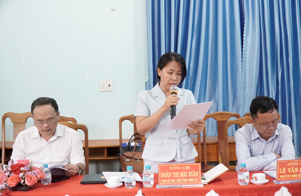 Tại buổi làm việc, đồng chí Doãn Thị Mai Xuân – Phó Bí Thư, Chủ tịch UBND xã Bình Tân đã báo cáo tổng quan tình hình tổ chức bộ máy, nhân sự và cơ sở vật chất của xã Bình Tân.