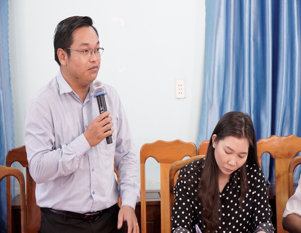 Phát biểu buổi làm việc, đồng chí Nguyễn Bá Việt – Bí thư Đảng ủy, Chủ tịch HĐND xã bày tỏ vui mừng khi được đón tiếp Đoàn công tác tác số 3 của Sở Xây dựng và nhấn mạnh: “Buổi làm việc không chỉ là dịp để địa phương được báo cáo trực tiếp thực trạng một cách toàn diện, và là cơ hội để lắng nghe ý kiến đóng góp, tháo gỡ khó khăn từ cấp trên. Xã Bình Tân mong muốn tiếp tục nhận được sự quan tâm, hỗ trợ để hoàn thiện hệ thống hạ tầng, cải cách hành chính, phục vụ tốt hơn cho nhân dân.”