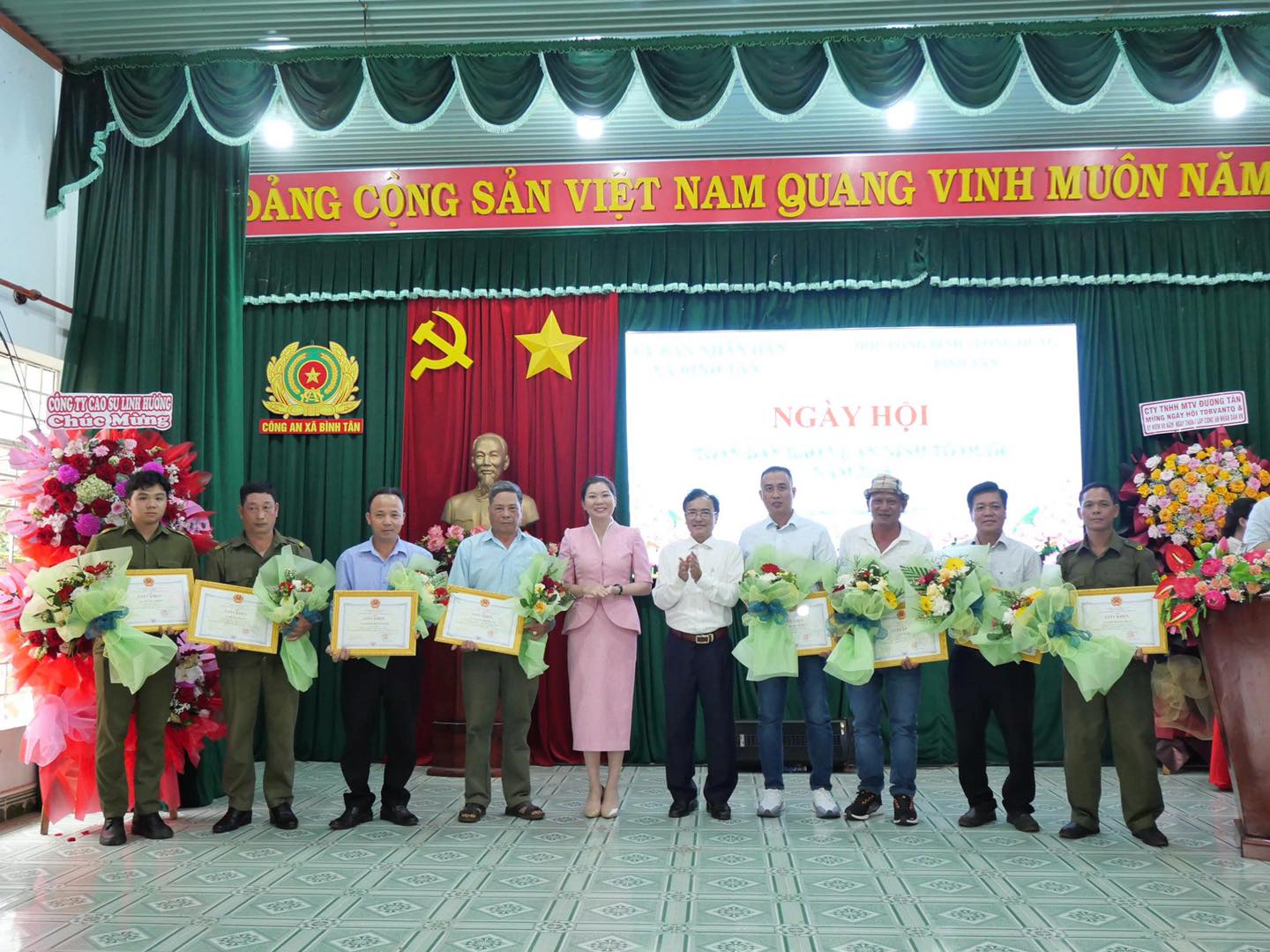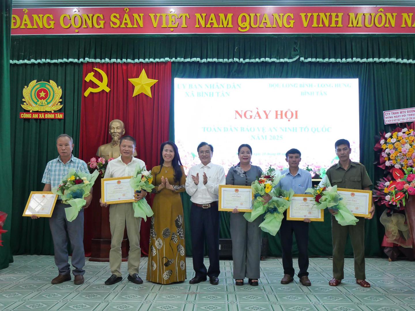 Dịp này, UBND xã Bình Tân đã khen thưởng 6 tập thể và 10 cá nhân có thành tích xuất sắc trong công tác phòng, chống tội phạm, tệ nạn xã hội và xây dựng phong trào toàn dân bảo vệ an ninh Tổ quốc.
