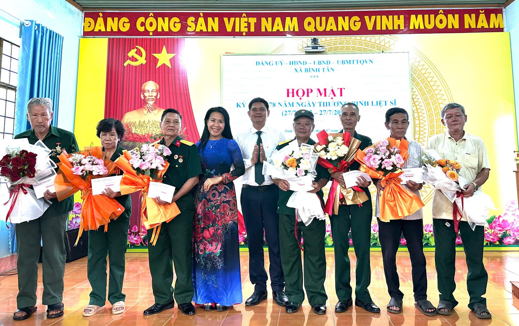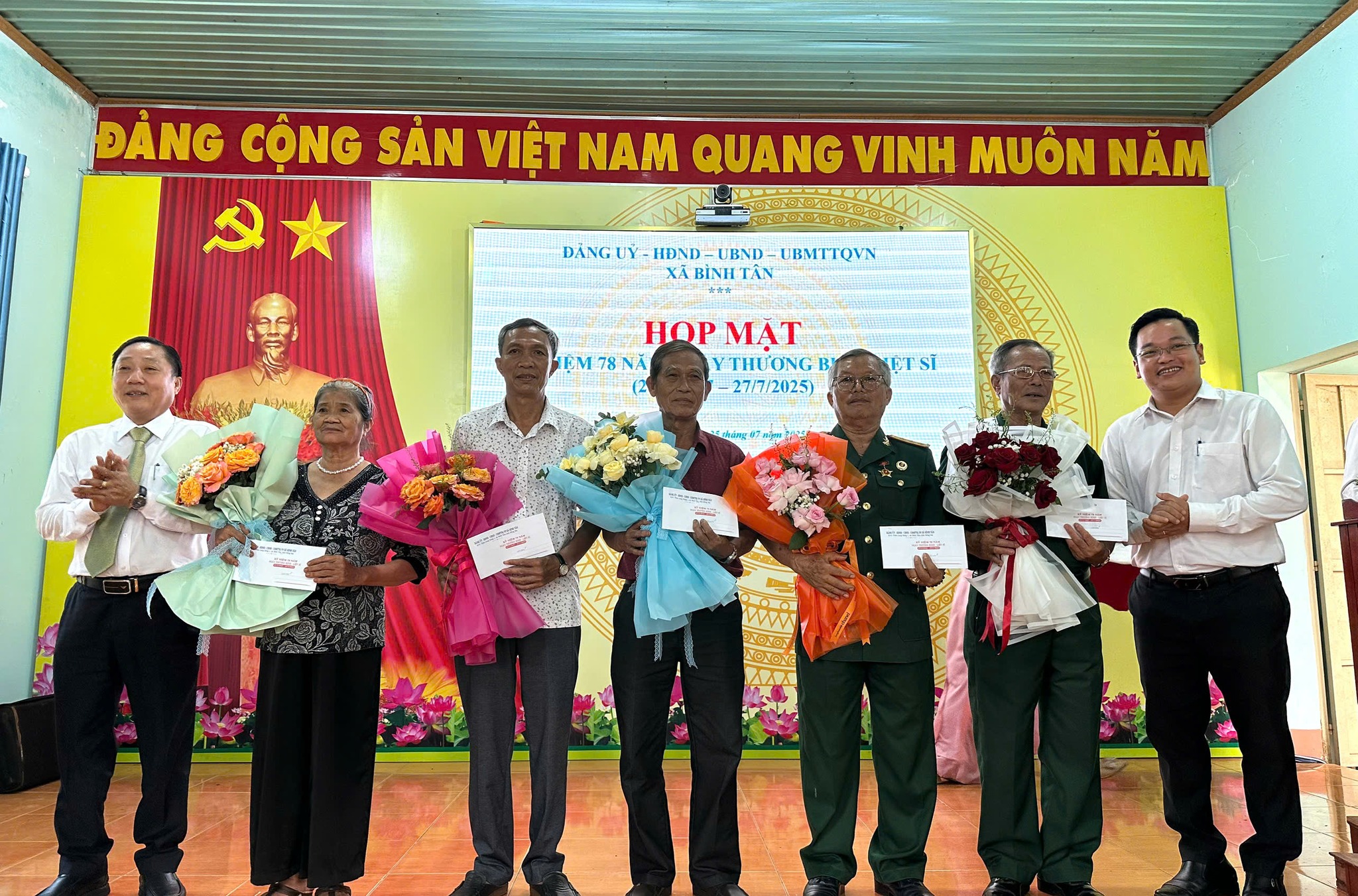 Phát biểu kết thúc buổi họp mặt, đồng chí Nguyễn Bá Việt – Bí thư Đảng ủy, Chủ tịch HĐND xã đã xúc động gửi lời tri ân sâu sắc đến các cô chú, ông bà là thương binh, bệnh binh, thân nhân liệt sĩ và người có công với cách mạng. Đồng chí khẳng định: Đảng bộ, chính quyền và nhân dân xã Bình Tân sẽ mãi mãi ghi nhớ công lao to lớn của các thế hệ cha anh đã hy sinh vì độc lập, tự do của Tổ quốc. Đồng thời, bày tỏ niềm tin và mong muốn thế hệ trẻ hôm nay – những người con của quê hương anh hùng – sẽ tiếp bước truyền thống vẻ vang, đoàn kết, sáng tạo, góp phần xây dựng xã Bình Tân ngày càng phát triển toàn diện, xứng đáng với sự hy sinh cao cả của các bậc tiền nhân.