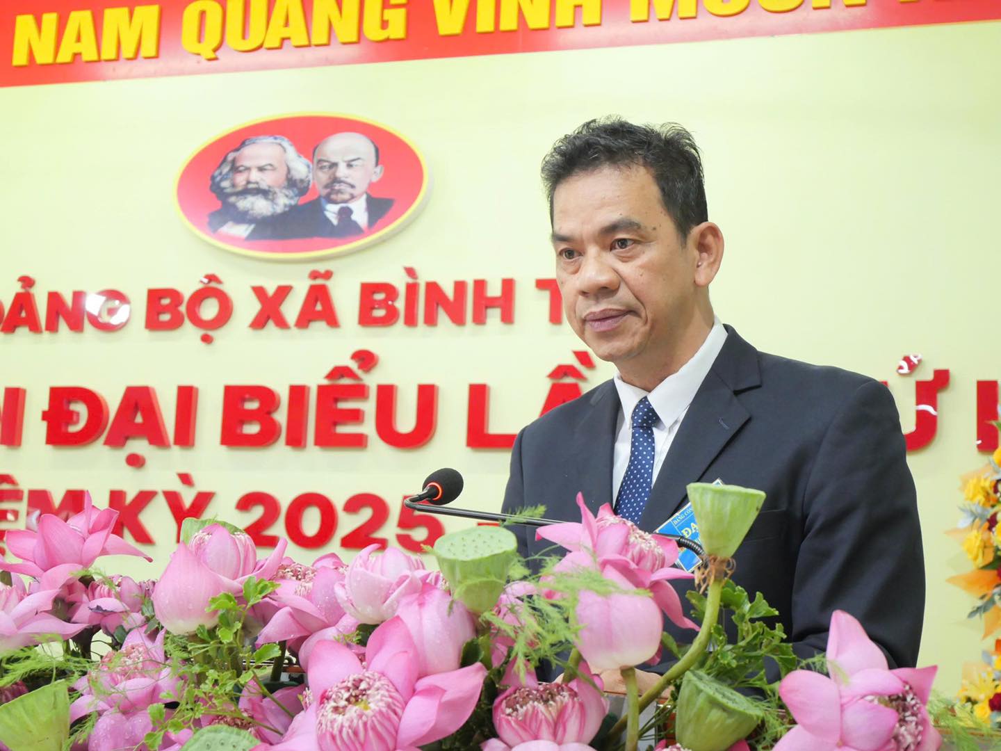 Phát biểu tại Đại hội, đồng chí Trần Trung Nhân – Ủy viên BTV Tỉnh ủy, Chủ nhiệm UBKT Tỉnh ủy ghi nhận và đánh giá cao tinh thần đoàn kết, chủ động, sáng tạo của Đảng bộ xã Bình Tân trong thời gian qua. Đồng chí nhấn mạnh: Việc thành lập xã Bình Tân là sự kiện đặc biệt, mở ra không gian phát triển mới, đồng bộ, hiệu quả; đề nghị địa phương tiếp tục phát huy lợi thế, huy động sức dân, tập trung vào các nhiệm vụ trọng tâm để xây dựng xã Bình Tân phát triển bền vững, toàn diện, đáp ứng yêu cầu trong tình hình mới.