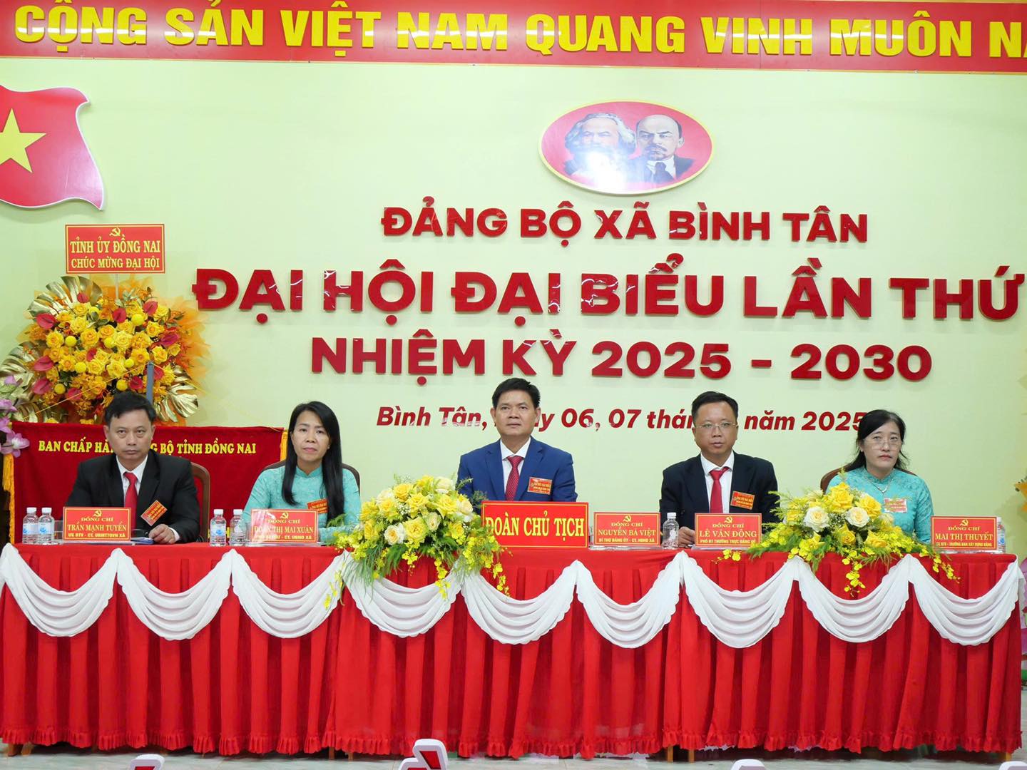 Phát biểu bế mạc, đồng chí Nguyễn Bá Việt – Bí thư Đảng ủy, Chủ tịch HĐND xã khẳng định: Thành công của Đại hội là kết tinh của trí tuệ, đoàn kết, trách nhiệm của toàn thể cán bộ, đảng viên và Nhân dân. Đảng bộ xã Bình Tân sẽ tiếp tục đoàn kết, chủ động, sáng tạo, nâng cao năng lực lãnh đạo, thực hiện thắng lợi các mục tiêu Nghị quyết đề ra trong nhiệm kỳ mới.