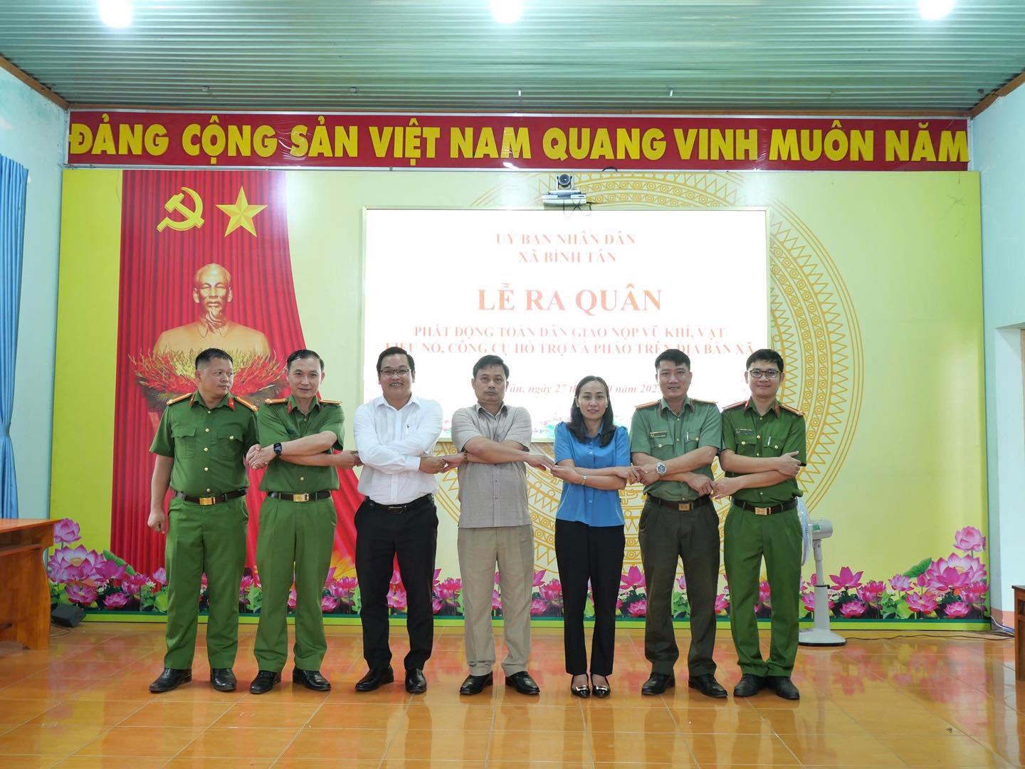 Ngay sau lễ phát động, Công an xã Bình Tân cùng các đoàn thể đồng loạt ra quân tuyên truyền, vận động người dân giao nộp tại các điểm tiếp nhận. Nhiều hộ dân đã chủ động hưởng ứng, thể hiện tinh thần trách nhiệm và ý thức tự giác cao.