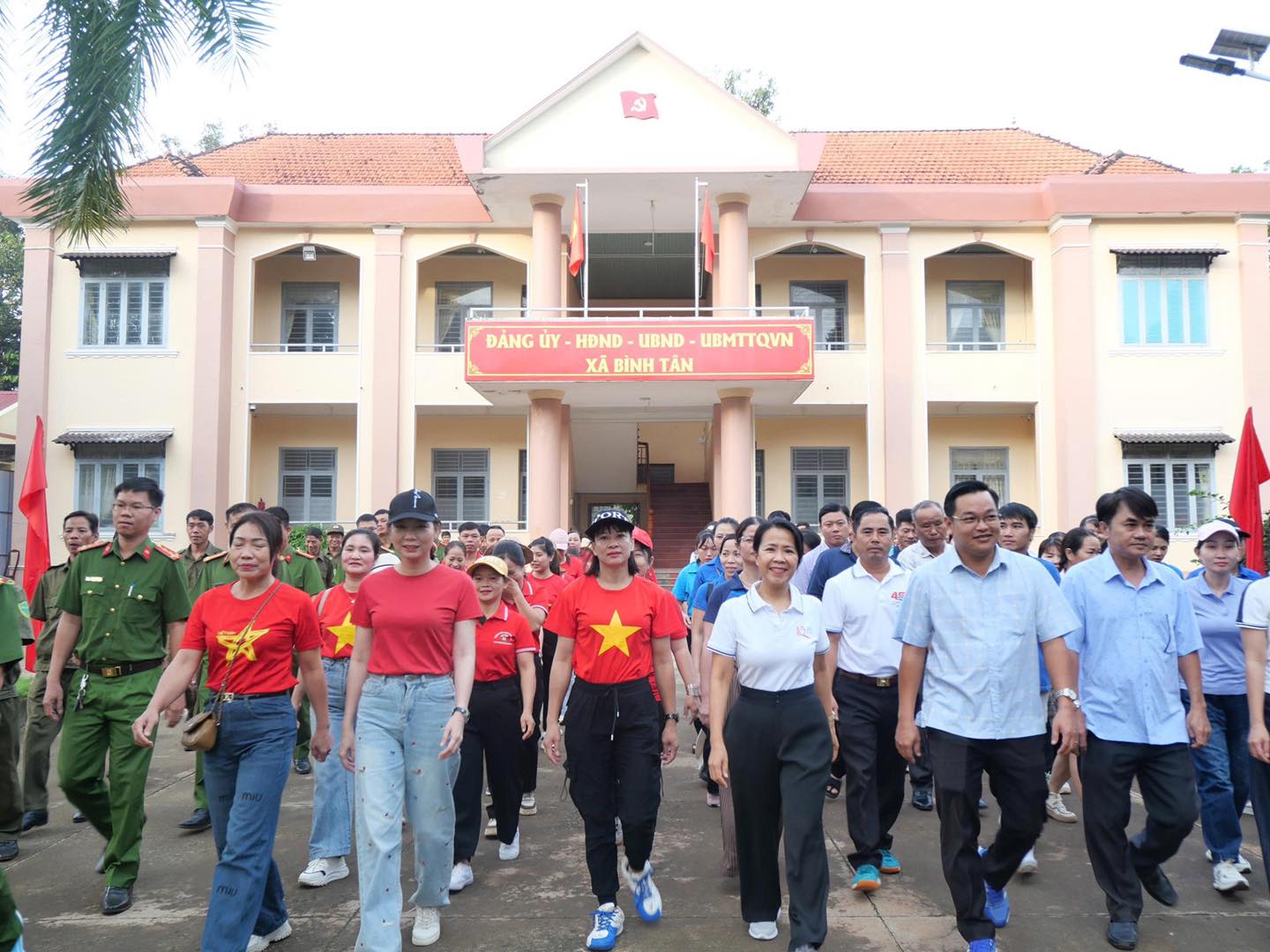 Tại điểm cầu xã Bình Tân, sau khi dự tiếp sóng trực tiếp chương trình tại hội trường, hơn 200 người đã hào hứng tham gia đi bộ với lộ trình dài khoảng 2-3 km, bắt đầu từ UBND xã, đi qua trường Mầm non Long Hưng và trở lại. Hoạt động diễn ra trong không khí phấn khởi, đoàn kết, lan tỏa tinh thần rèn luyện sức khỏe, nâng cao đời sống tinh thần trong cộng đồng.